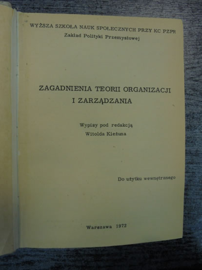 Jednak do niezbędności zmian kulturowych w społeczeństwie, warunkujących przecież prawdziwy rozwój socjalistycznej gospodarki, Witold Kieżun powracał także później w swoich wykładach i skryptach wydawanych "do użytku wewnętrznego" przez Wyższą Szkołę Nauk Społecznych przy KC PZPR. Rozważając problem zmiany kulturowej we wspomnianych już "Zagadnieniach teorii organizacji i zarządzania" uzależnił od tego kwestię "przeciwdziałania procesowi koncentracji i centralizacji kapitałów" polemizując w tym miejscu ze znanym teoretykiem kapitalizmu Fridrichem A. Hayekiem nazywając jego myśl mianem "utopijnej próby zatrzymania rozwoju społecznego" ("Zagadnienia teorii organizacji.", str. 91).