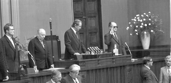 Generał Wojciech Jaruzelski składa przed Zgromadzeniem Narodowym przysięgę jako prezydent PRL - 19 lipca 1989 r./Aleksander Jałosiński /Agencja FORUM
